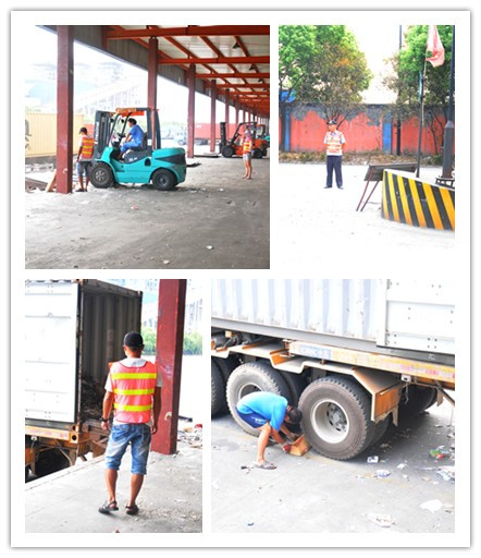 针对场站叉车掏箱作业存在的由于集卡未停稳容易造成叉车从平台坠落的安全隐患提出了解决方案并得到落实:叉车进入集装箱前,叉车人员需确认集卡车停稳(确认方式:后轮垫好三角木)。叉车作业完成后,向集卡车司机示意取走三角木,集卡车才能驶离。开箱作业时使用链条辅助开箱。