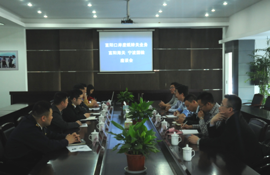 4月16日上午,宁波出入境检验检疫局通关办处副主任孙霄鹏、查验科副科长王志烨、综合科副科长晁海佳等一行到富阳口岸调研。杭州海关富阳办事处副主任蔡达、通关科科长杨彦等陪同调研。星空(中国)xingkong·官方网站集团董事长徐林军、星空(中国)xingkong·官方网站国际公司经理张英、星空(中国)xingkong·官方网站国际宁波分公司经理孙华伟等陪同接待。