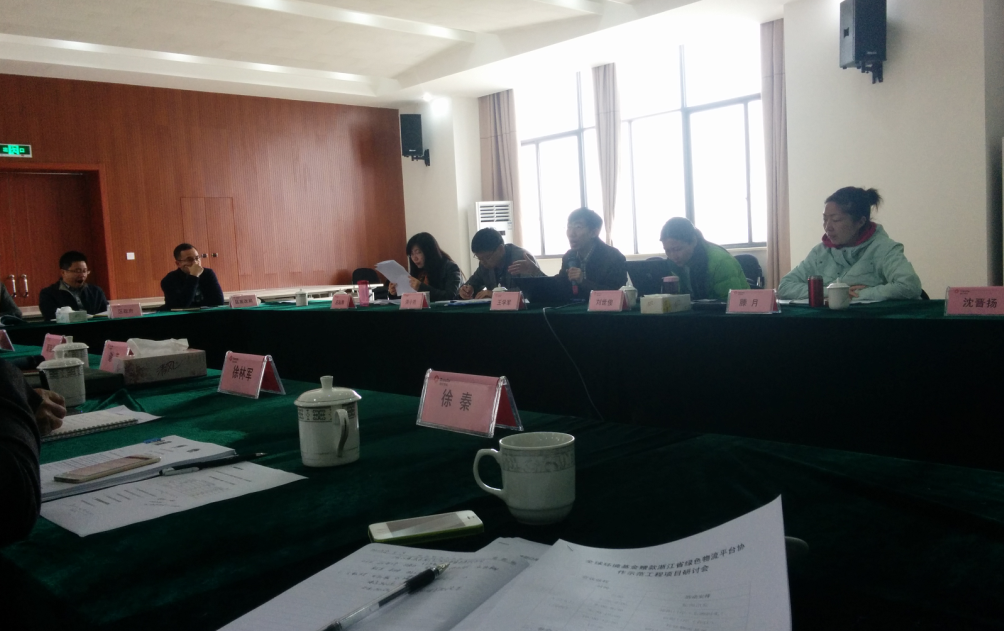 4月9日上午,联合国开发计划署项目经理刘世俊、滕月,项目文件编写组组长王学军一行来访我司,视察我司绿色物流发展情况。省财政厅金融处处长洪小然,金融处应起翔,省项目办牟眸、杨文涛,富阳区发改局服务业发展科科长朱志军,富阳区财政局科长唐土法,以及富阳传化物流小组陪同调研,我司董事长徐林军,物流专家徐秦,财务总监方成爱,综合管理部周欢等陪同接待。并在传化物流基地召开绿色物流研讨会,重点讨论绿色物流工作开展中遇到的问题以及未来绿色可持续物流的发展方向,主题涉及集约资源,绿色运输,绿色仓储,绿色包装等等。