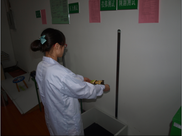 图三:实验室检测人员进行80cm高度投掷测试